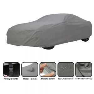 MOTO SHIELD presents Grey car body cover made with premium polyester 190T water resistant fabric.This car cover will provide enhanced protection to your car from birds droppings,scratches,dust and dirt particles.Keep protected your car body paint fading away from sun UV rays.It has mirror pockets slots that will provide proper shape to cover according to car body.Elastic is attached In front and back bottom bumper for proper grip of cover. Belt and buckle are also attached with it for proper hold on to your car in weather extremes and heavy winds.Is is Lite weighted cover which is easy to carry ,fold and store.