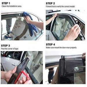 Moto Shield Car Door Visors or commonly used term known as Wind Deflectors or Rain Guards, are perhaps one of the most important car equipments to be used to protect your car from rain, or sun. These panels/ deflectors protects your car in rainy days as well as in sunny days as these panel mounting on your car window helps to open the windshields which protects from humidity caused due to fog. These door visor acts as protector stripes for your car. Chrome pleated door visors make your car look stylish. These Door Visors also act as sun blockers for your car as they also act as protective stripes. They act as wind deflectors as they reduced the wind noise from the cabin especially when your car is at high speeds. High quality raw materials are used in the manufacturing of these door visors which are processed through the Automatic Injection Moulding machines which not only ensures the perfect fitting of the product but also helps in maintaining the products's quality standards. Hers is the procedure for fixing the product - 1. Clean the Car Door Edges with the Cloth. Make sure that Car Window edges are spotlessly clean where the Door Visor need to be installed. 2. Hold the Door visor against the car door edge without removing the adhesive tape to check the position and correct part. 3. Now remove adhesive tape film and place the part back in proper place, pressing (full hard force) from one end of the part, applying uniform pressure along its length to the other end. 4. Leave the part for at least 15 min. after fitment before driving your car.